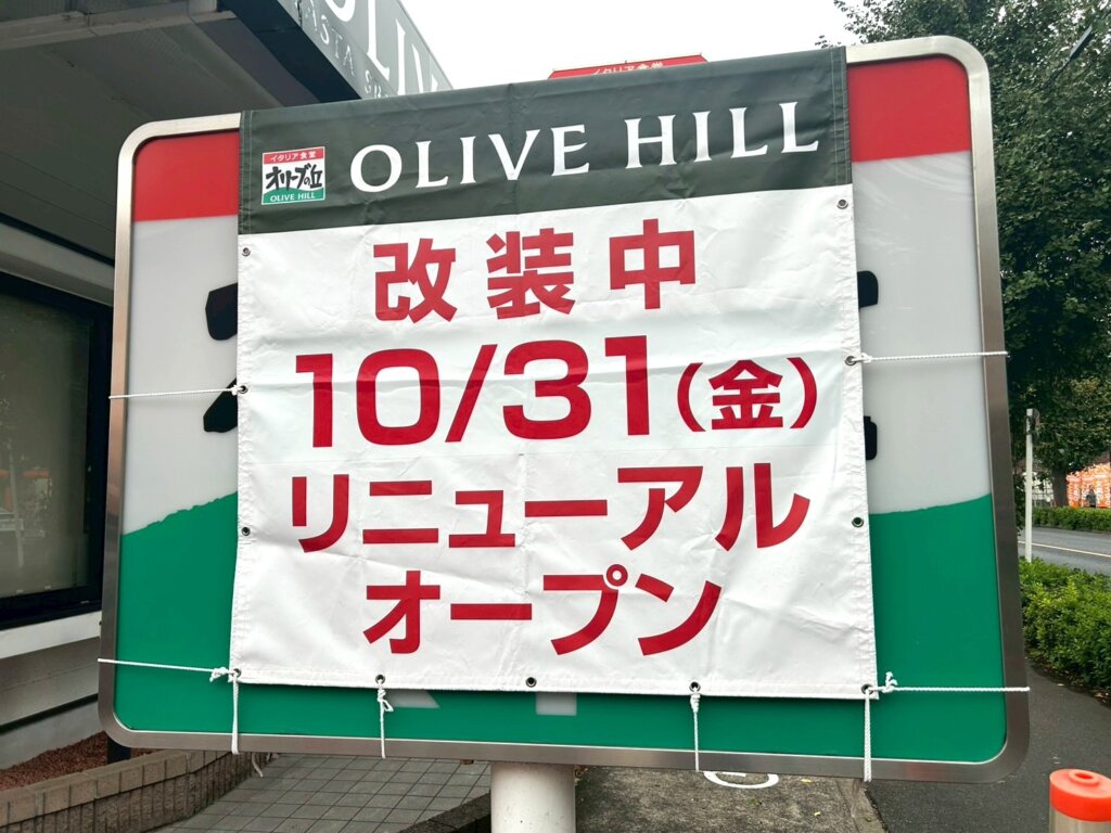 【改装オープンのため臨時休業】2025年10月14日、東越谷3丁目にあるオリーブの丘東越谷店がリニューアルオープンのため一時休業しています【がやてっく休業】