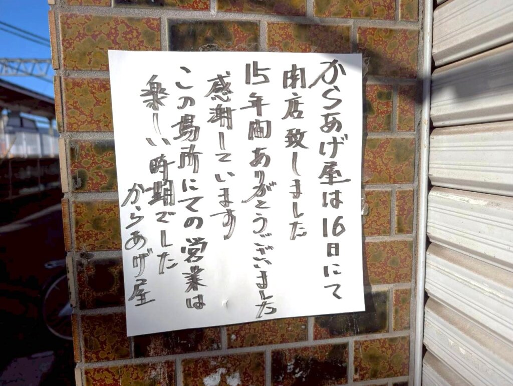 2025年11月16日、袋山にあるからあげ屋が閉店しました。