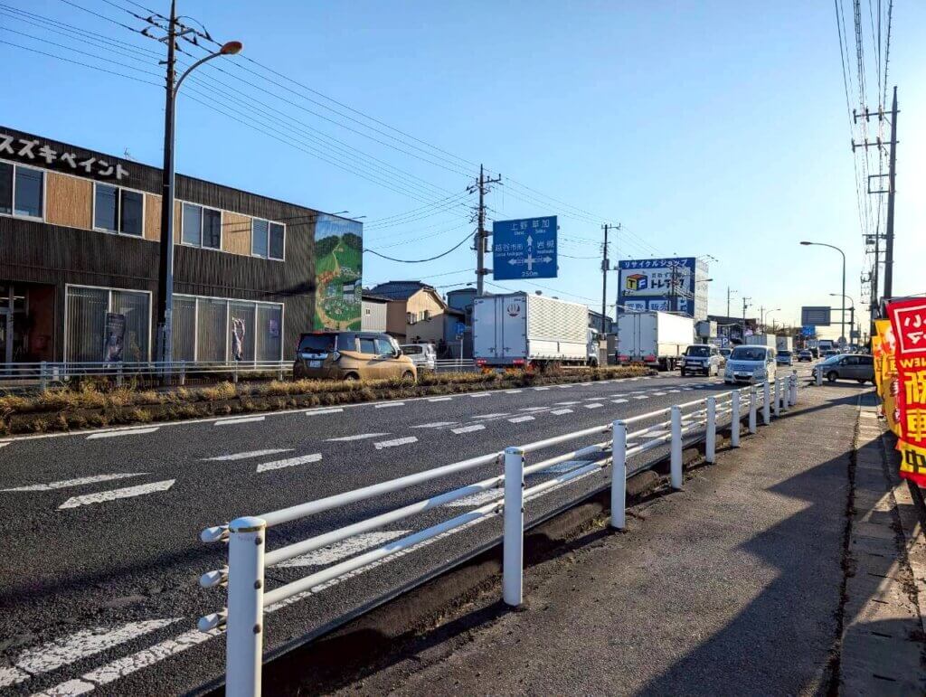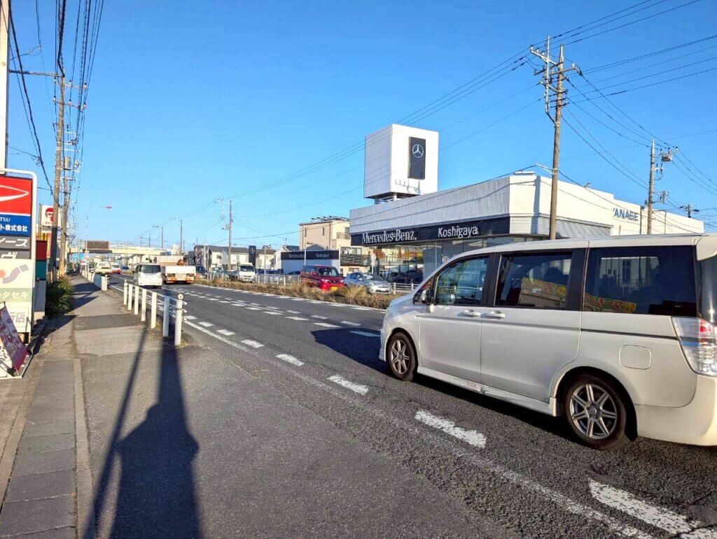 国道4号線沿い、ヤナセ越谷支店の前にありました。ガソリンスタンドは現在も営業中です。