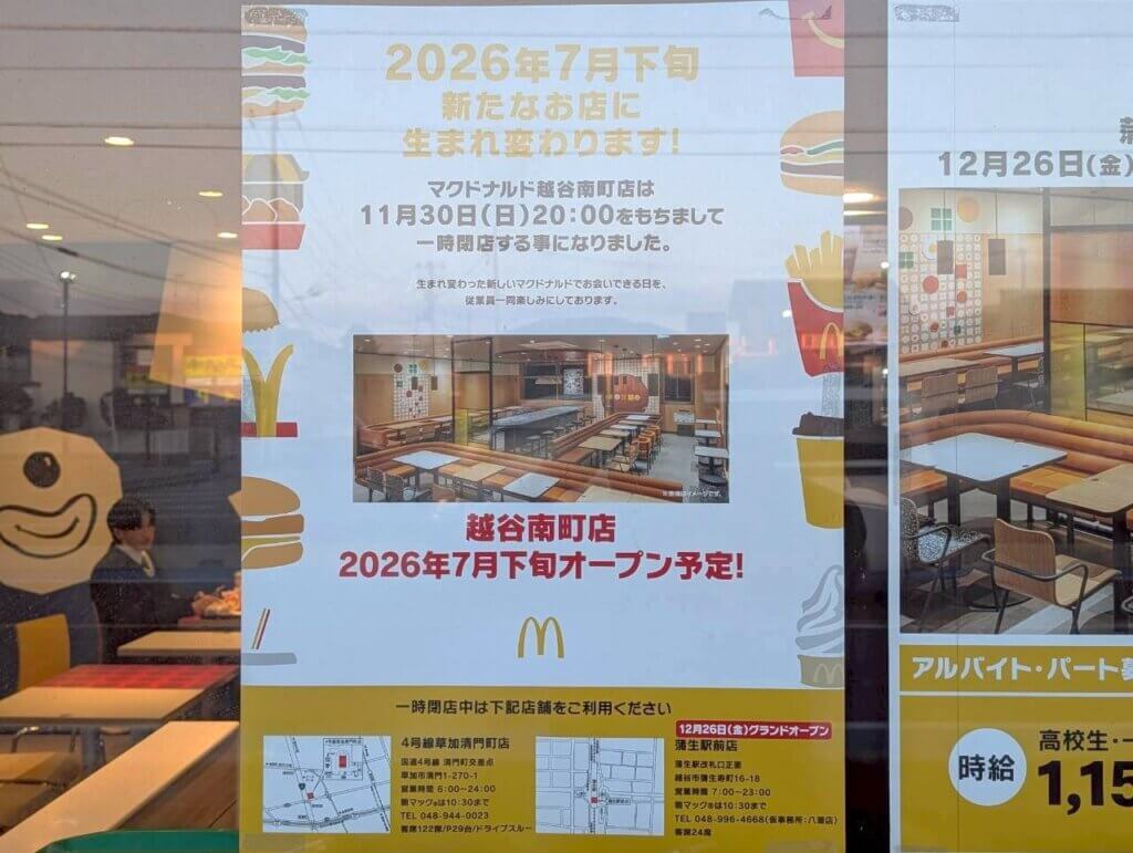 【生まれ変わるマクドナルド】2025年11月30日、南町にあるマクドナルド越谷南町店が閉店しました【がやてっく閉店】