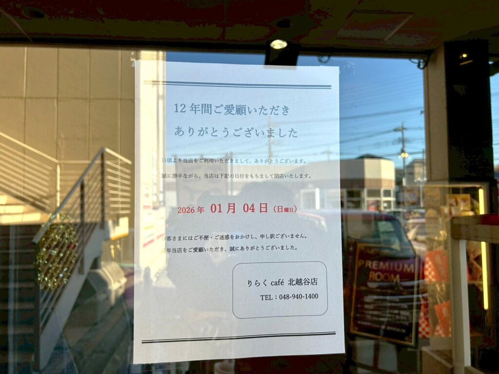 2026年1月4日、大沢にある「りらくcafe北越谷店」が閉店してしまいます。