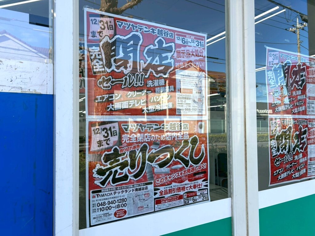 2025年12月31日、東越谷にあるマツヤデンキ越谷店が閉店します。