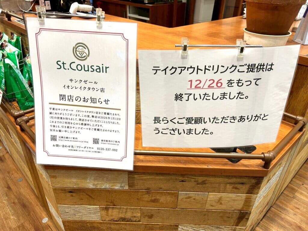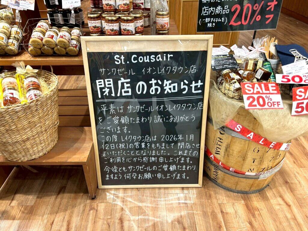 2026年1月12日、イオンレイクタウンmori1階にあるサンクゼールイオンレイクタウン店が閉店します。