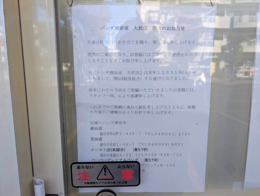 【経営統合に伴い、スタッフが移動】2025年12月31日、東大沢にあるパンダ理容室大沢店が閉店しました【がやてっく閉店】