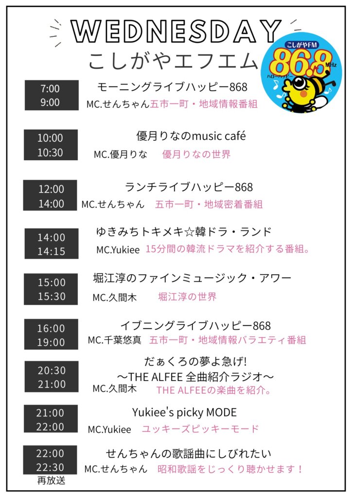 【水曜日】ハローハッピー868こしがやエフエムFM番組表【こしがやエフエム】