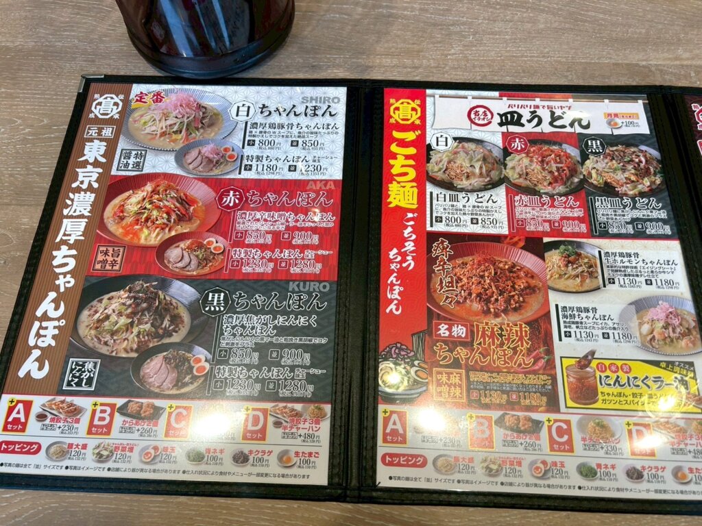 メニューは3種類のちゃんぽんを中心に、皿うどんやラーメンが展開されています。定食メニューやご飯ものなどもあり、バリエーションがとても豊富です。公式LINEを登録するとお得なクーポンをいただくことが出来ます。