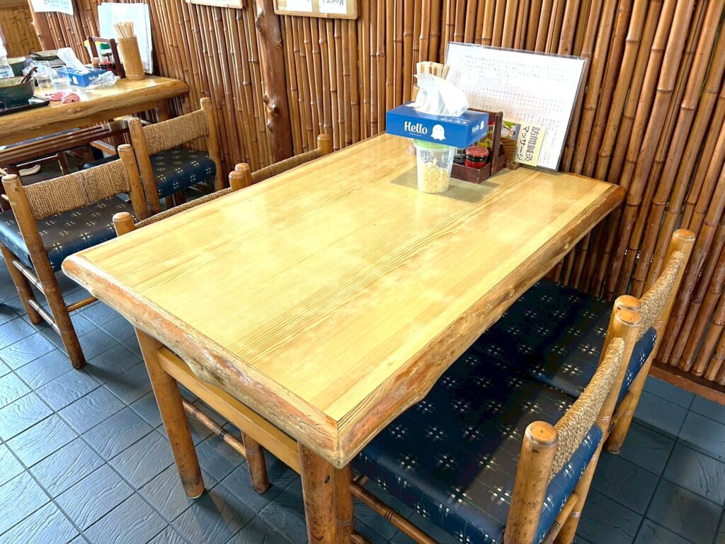 店内はテーブル席と座敷席で構成されています。34席あり、家族連れでも問題ありません。昔ながらの畳と椅子があり、レトロな雰囲気を感じることが出来ます。卓上には天かすがおいてあり、自分でトッピングすることが出来ます。