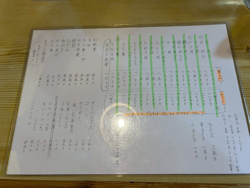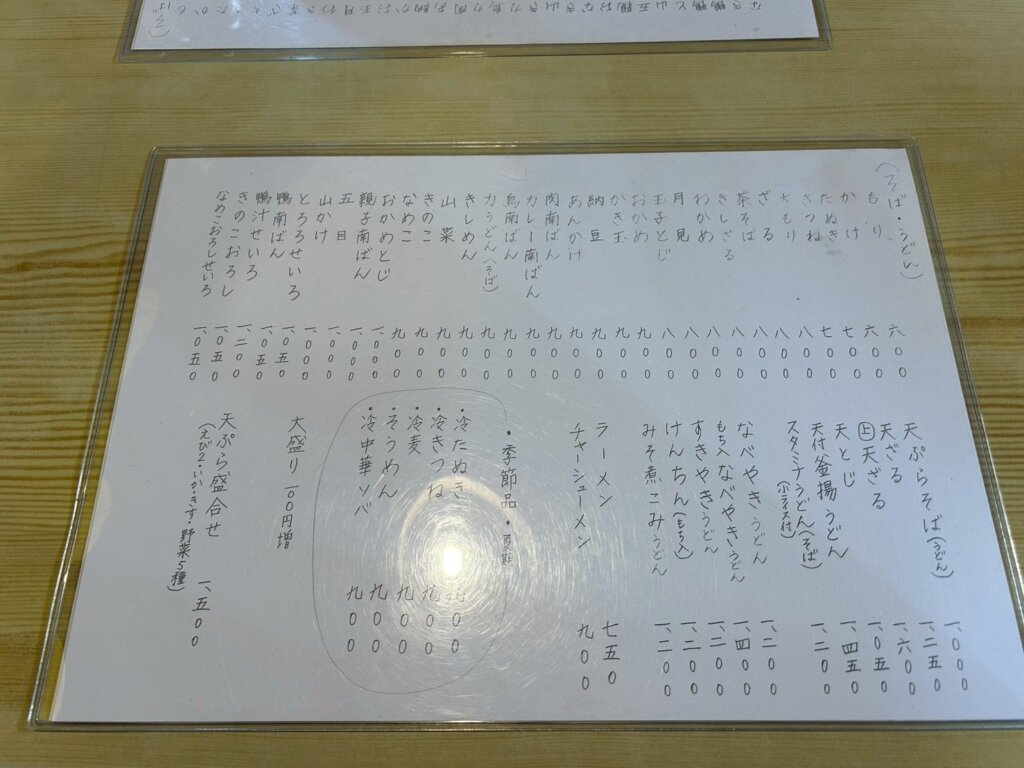 メニューはそばかうどんを選択することが出来ます。かけやざるのような王道メニューはもちろん、すき焼きうどんなどのようなメニューも展開されています。季節品という期間限定メニューもありました。丼ものもありセットにすることも可能です。