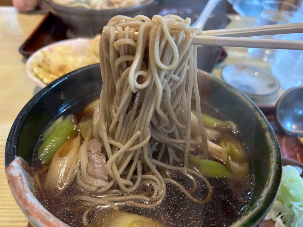 そばの香りと鴨肉の香りが混じりあっています。つゆは薬味と七味の相性が抜群で、コシのあるそばと絶妙に絡み合っています。暖かいそばは体の芯まで温めてくれました。
