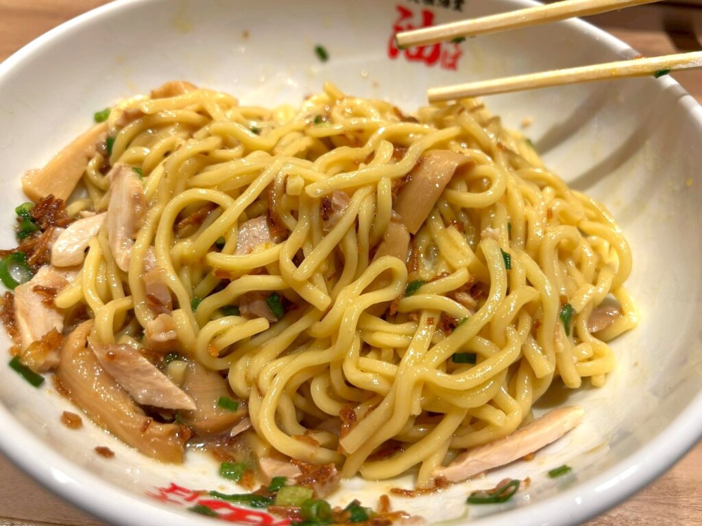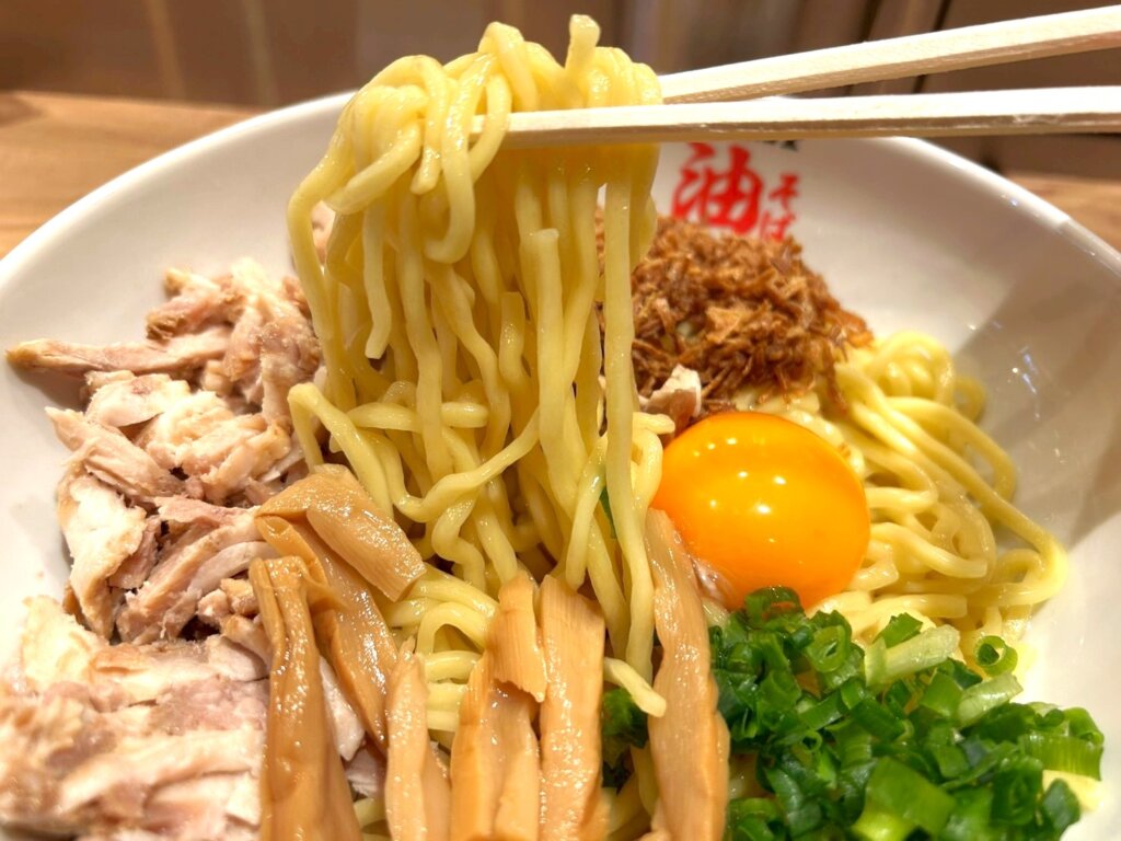 麺はストレートでモッチリとした麺になっていて、小麦の香りがしっかりとしています。歯ごたえがあり、のど越しの良さも感じられます。まさに油そばのために作られた麺でした。