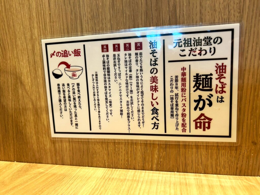 元祖油堂 油そばエキア越谷店に行ってきました!