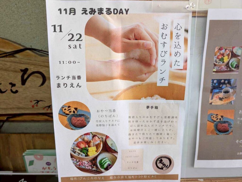 メニューは全部で4種類。11月のメインは「おむすびランチ」です!