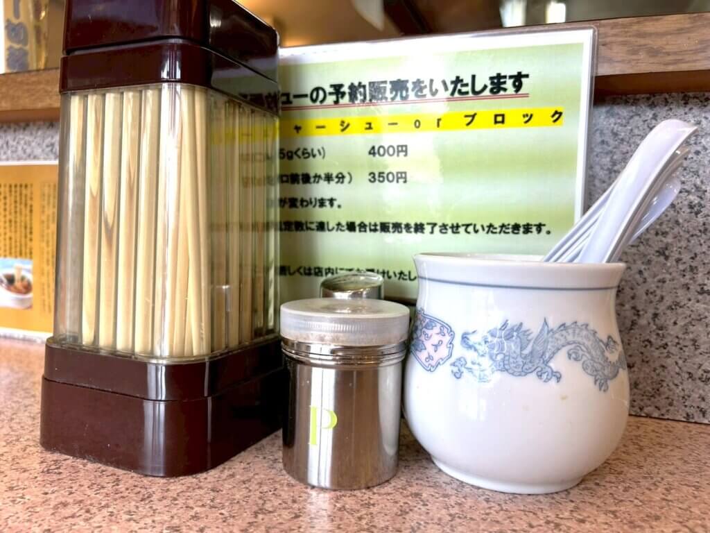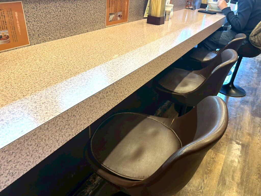 店内はカウンター席のみで構成されています。15席あり、椅子と椅子の間隔が広くとられているので、ゆっくりと食事を楽しむことが出来ます。卓上の調味料は胡椒のみ。本来のラーメンの味を堪能させて頂きます。