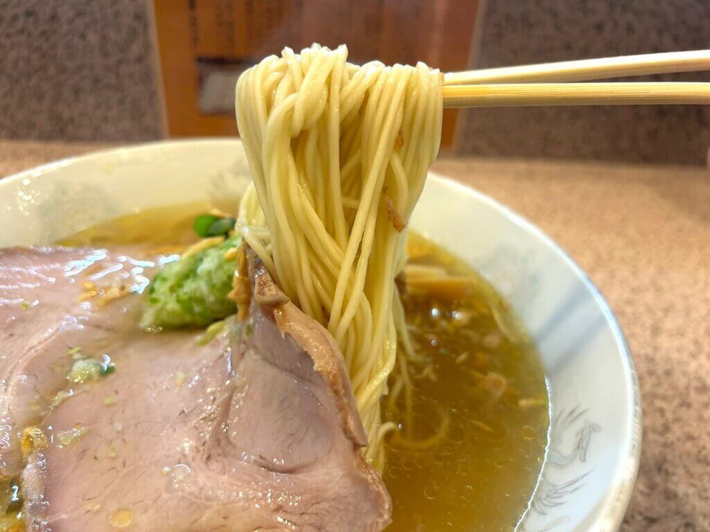 麺は細麺のストレートです。滑らかな食感で、あっさりとした塩ベースのスープとの相性が抜群です。揚げネギは、普通のネギよりも香りがたち、食欲を促進してくれます。チャーシューはとても柔らかく、しっとりとしていて、口の中で溶けていきます。噛めば噛むほど、肉の旨みが広がっていくのが印象的でした。