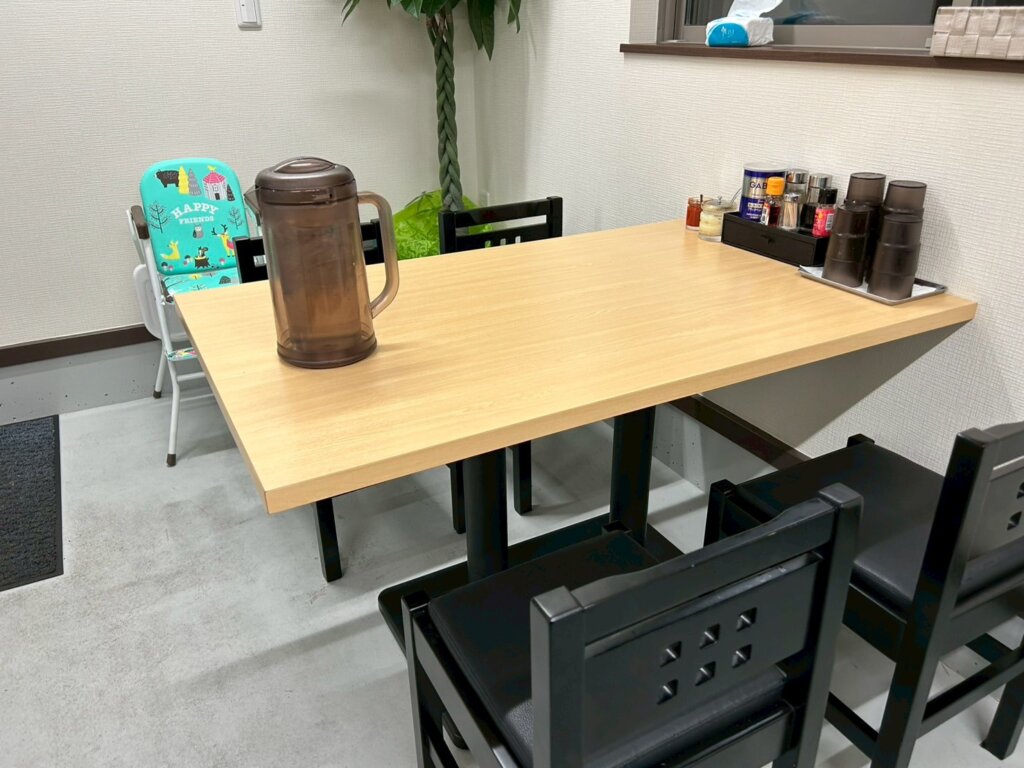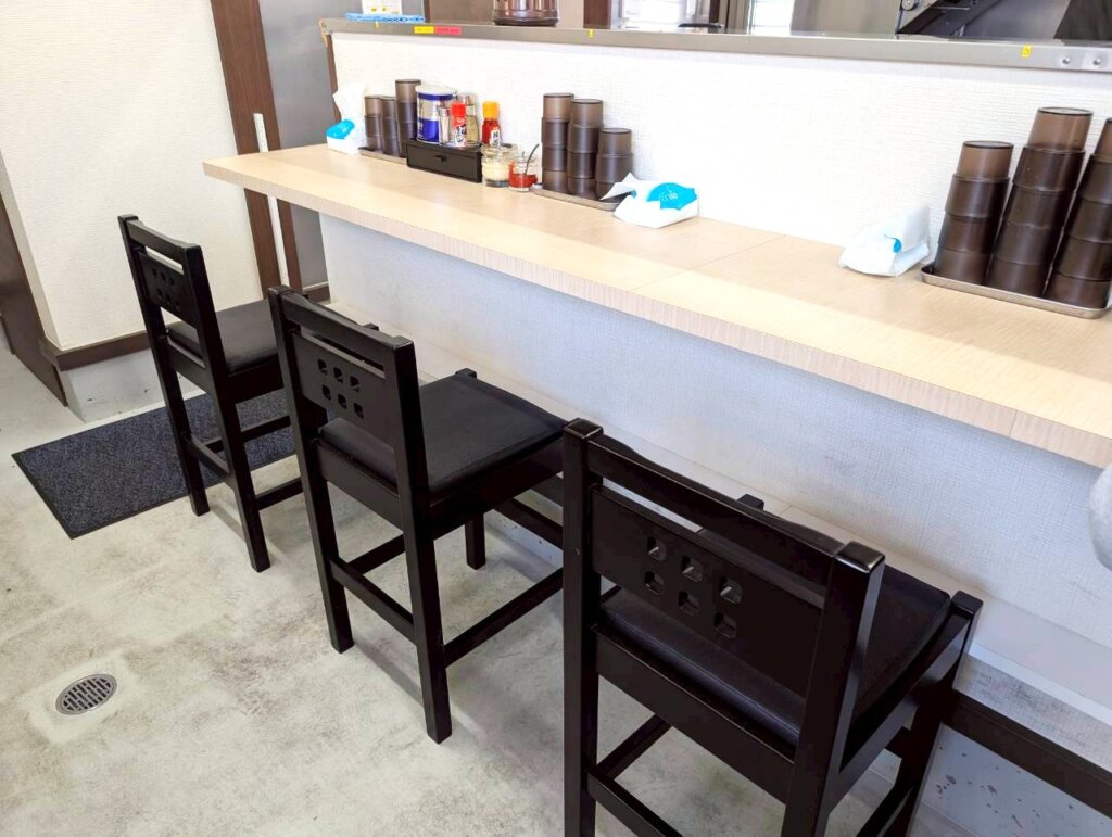 店内はカウンター席とテーブル席で構成されています。テーブル席は一つで、お子様用の椅子も用意されています。白を基調とした内装は、色合いのバランスが取れていてとてもきれいでした。カウンター席は10席あります。