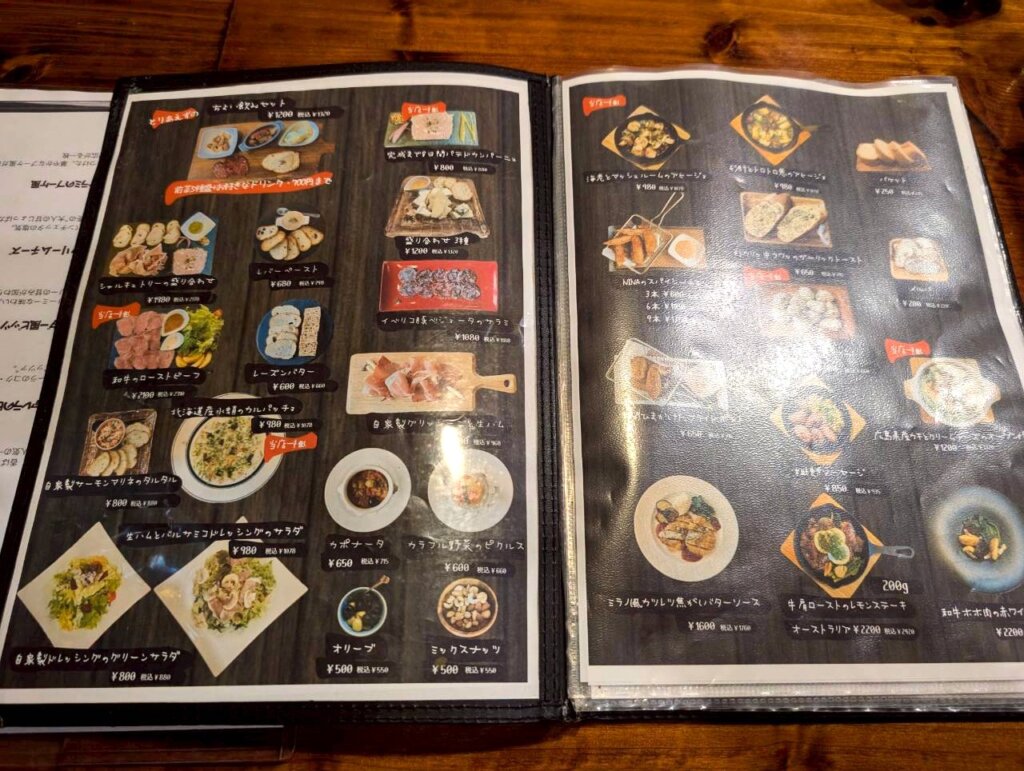 メニューは季節によって変化します。メインにはピザ・パスタ・ドリア・ガレットなど用意されていました。単品メニューも豊富にで、お食事のみならず、お酒をメインに楽しむことも出来そうです。お酒も様々あり、ワインやカクテルなども取り揃えられていました。