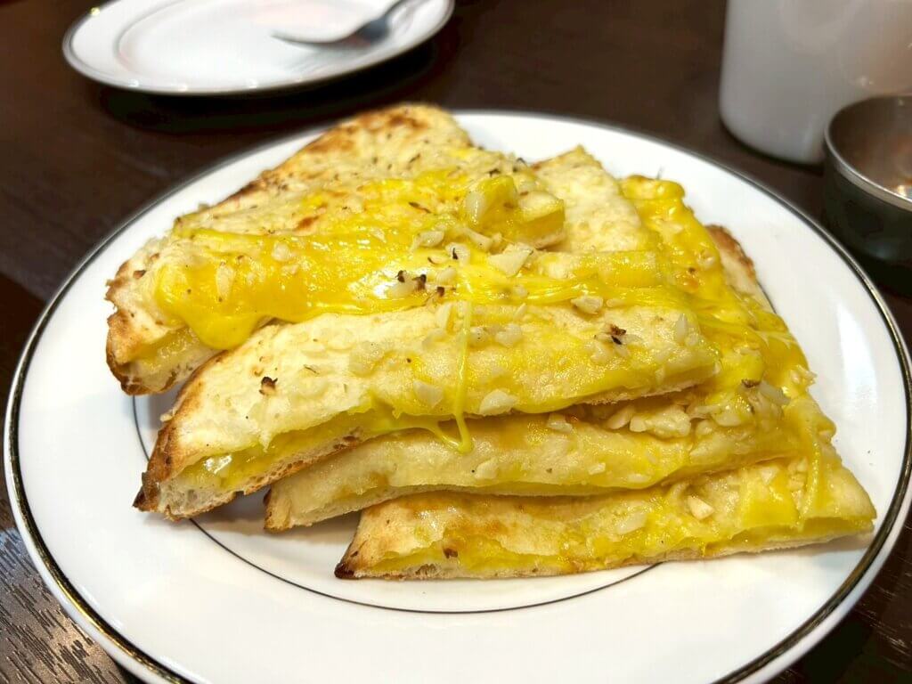 追加でガーリックチーズナンとチキンティッカを注文させていただきました。ガーリックチーズナンはチーズとガーリックがこれでもかと詰まっていて、圧倒的なボリュームがありました。チキンティッカはお酒に合う、クセになる一皿でした。