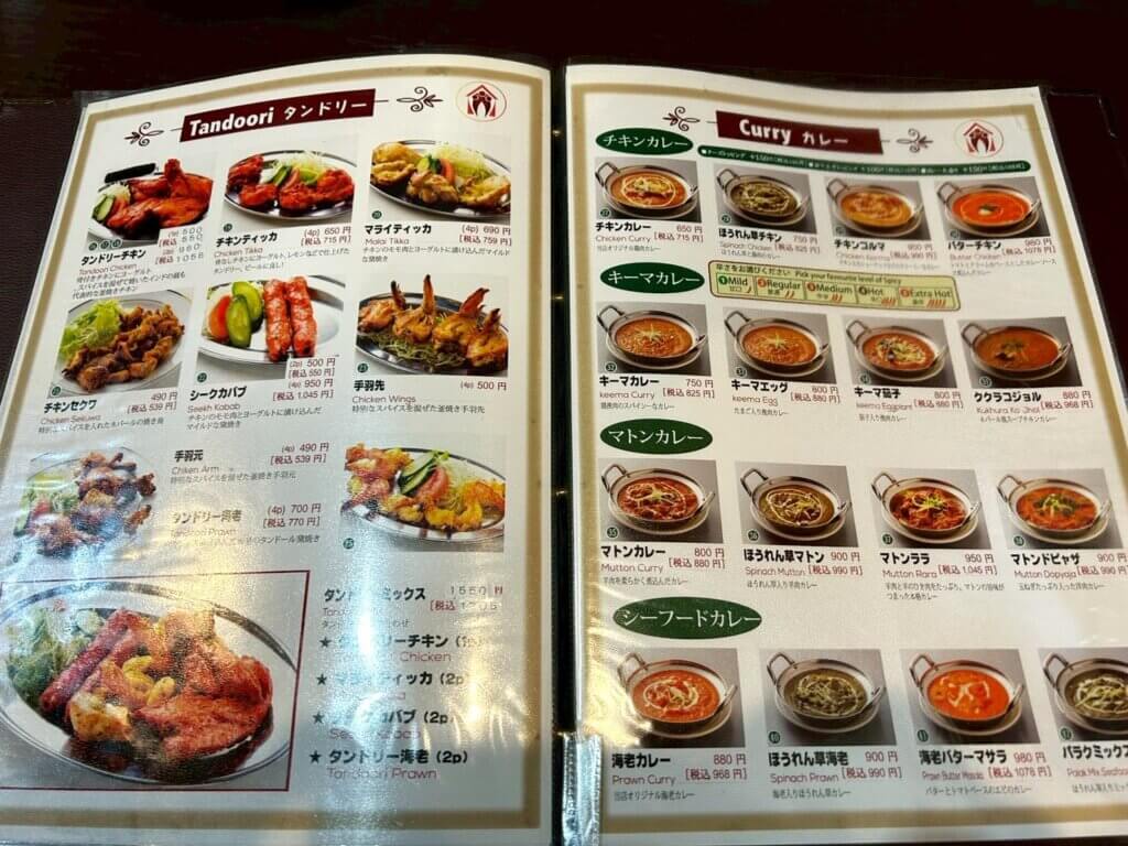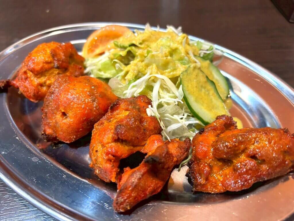 メニューはランチタイムとディナータイムで分かれています。ランチはセットがメインで、サラダ・ドリンク・カレー(メイン)・ナン又はライスという構成がベースとなっています。カレーは辛さを選択することができ、タンドリーチキンもたくさんの種類が用意されていました。
