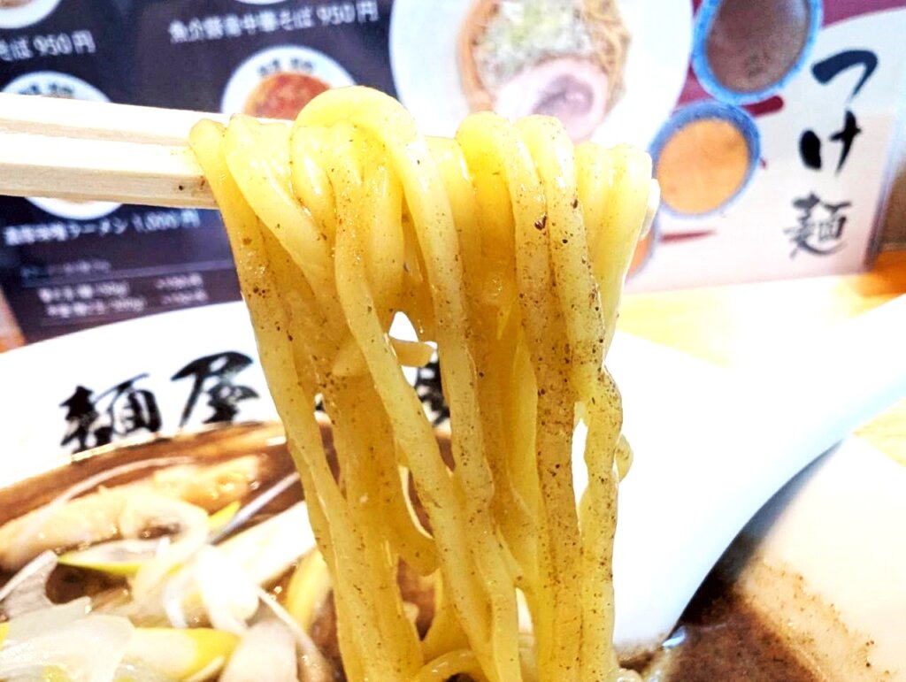 麺はモチモチ食感で、スープに負けない香りと味を持っています。メンマは、穂先メンマを使用。こちらも食感が楽しいです。スープとよく絡み合いながらも、それぞれの食材がしっかりと役割を担っており、非常にバランスの良い中華そばになっています。