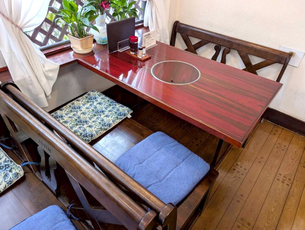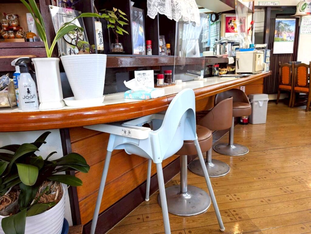 店内は、テーブル席とカウンター席で構成されています。席の間隔で広く、安心感があります。あちこちにお花が飾ってあり、すごく優しい空間でした。小さなお子様用の椅子もあるので、ご家族でもお食事を楽しむことができます。
