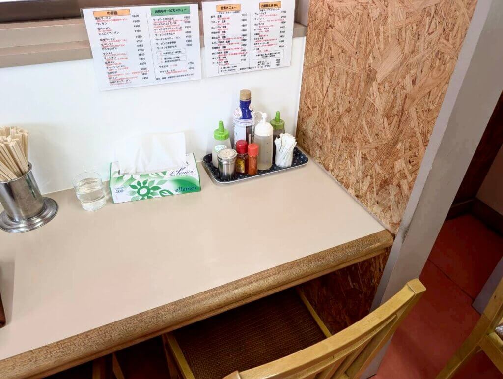 メニュー表には、中華そばや定食など、気になる品がずらり。ラーメン類はもちろん、定食や丼ものまで、リーズナブルな価格で用意されています。