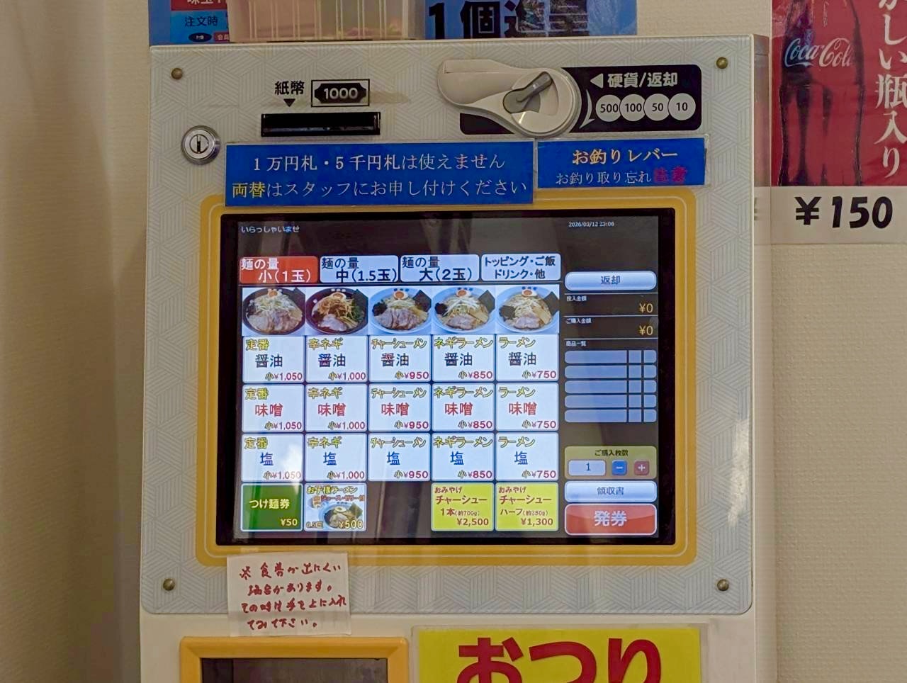 注文は券売機スタイルです。人気の定番をはじめ、ネギラーメン、辛ネギ、チャーシューメンなど、メニューが豊富。それぞれ醤油・塩・味噌の3種類から選べるので、何度か通って食べ比べしてみるのもアリです。