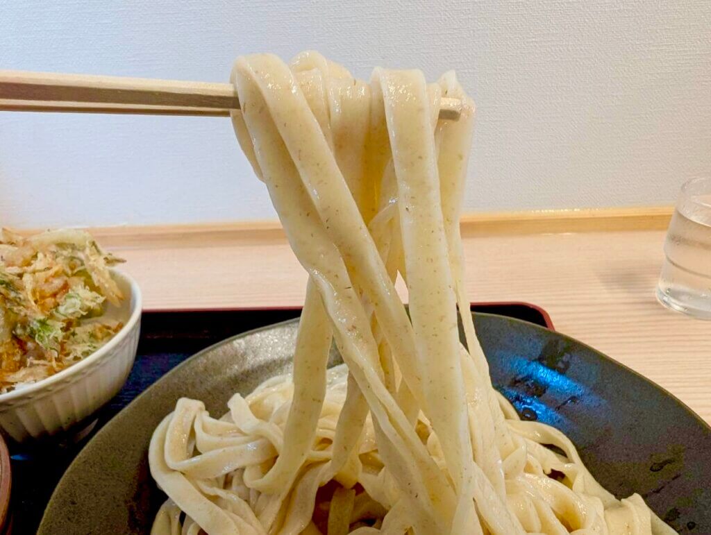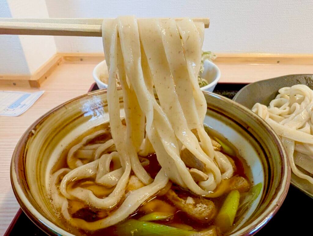 うどんの味に負けず、うどんを活かすつけ汁。ネギや油揚げなどの具材のおかげで、食感を楽しめるのも嬉しいポイントです。