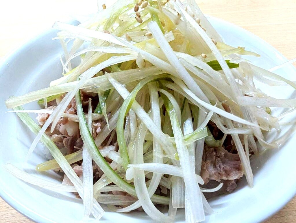 中細ストレート麺と塩味の効いた繊細なスープは相性抜群。繊細であるが故、ネギチャーシューの旨味が際立ちます。シャキシャキの白髪ネギと、しっとりした肉厚チャーシューは、噛めば噛むほど補完性の高さを実感することが出来る、まさに最高峰の組み合わせでした。コショウをかけると味が際立ちます。おすすめです。
