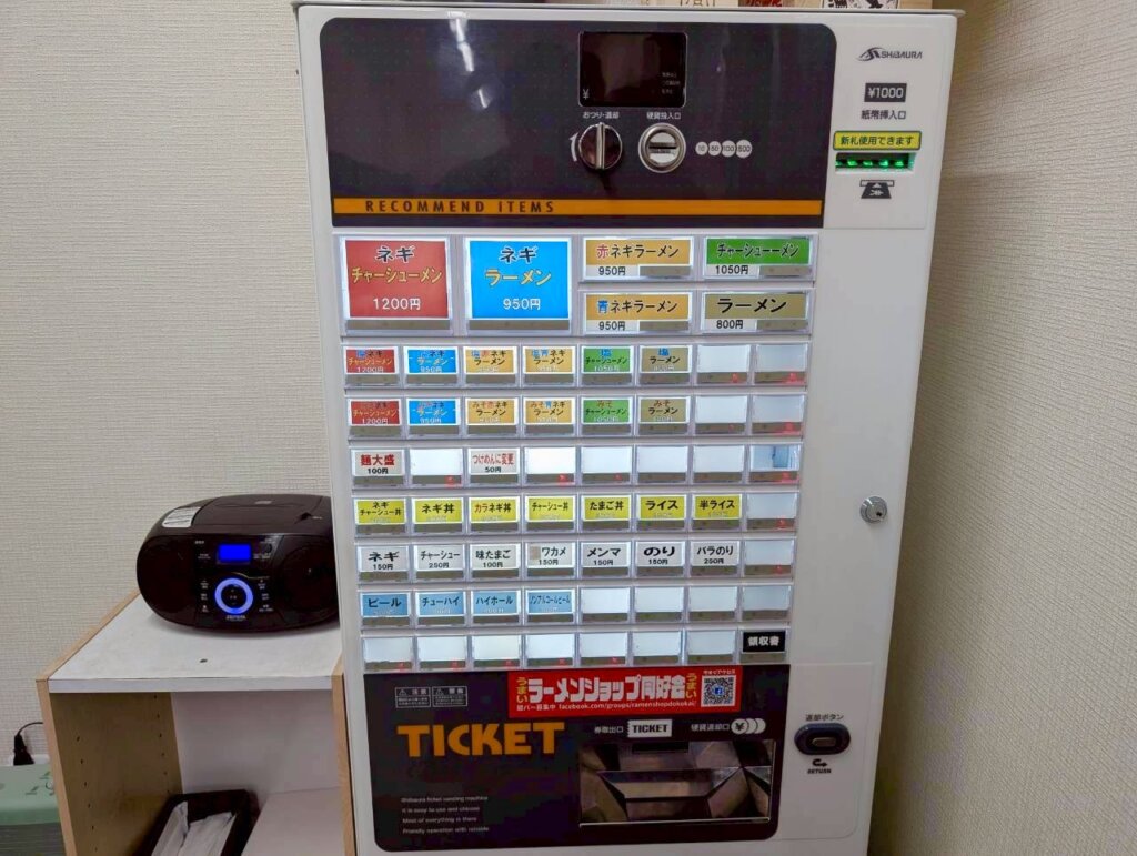 注文は入り口近くの食券機にて。ネギラーメン、ネギチャーシューメン、赤ネギラーメン、青ネギラーメンなど、“ネギ系“のラーメンがずらりと並んでいます。トッピングや丼ものも充実。自分だけのオリジナルの組み合わせを楽しむことが出来ます。