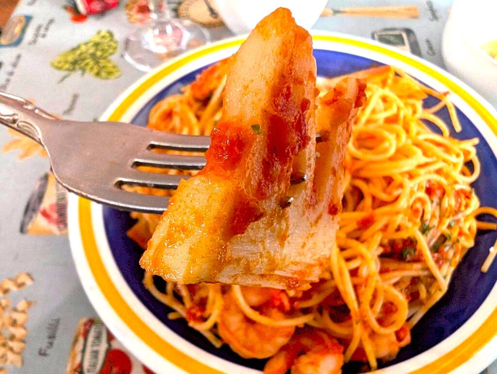 大きなえびと新竹の子は、春の訪れを感じさせてくれます。様々な食感と旨みを感じることができる、素敵なスパゲッティーを楽しむことができました。