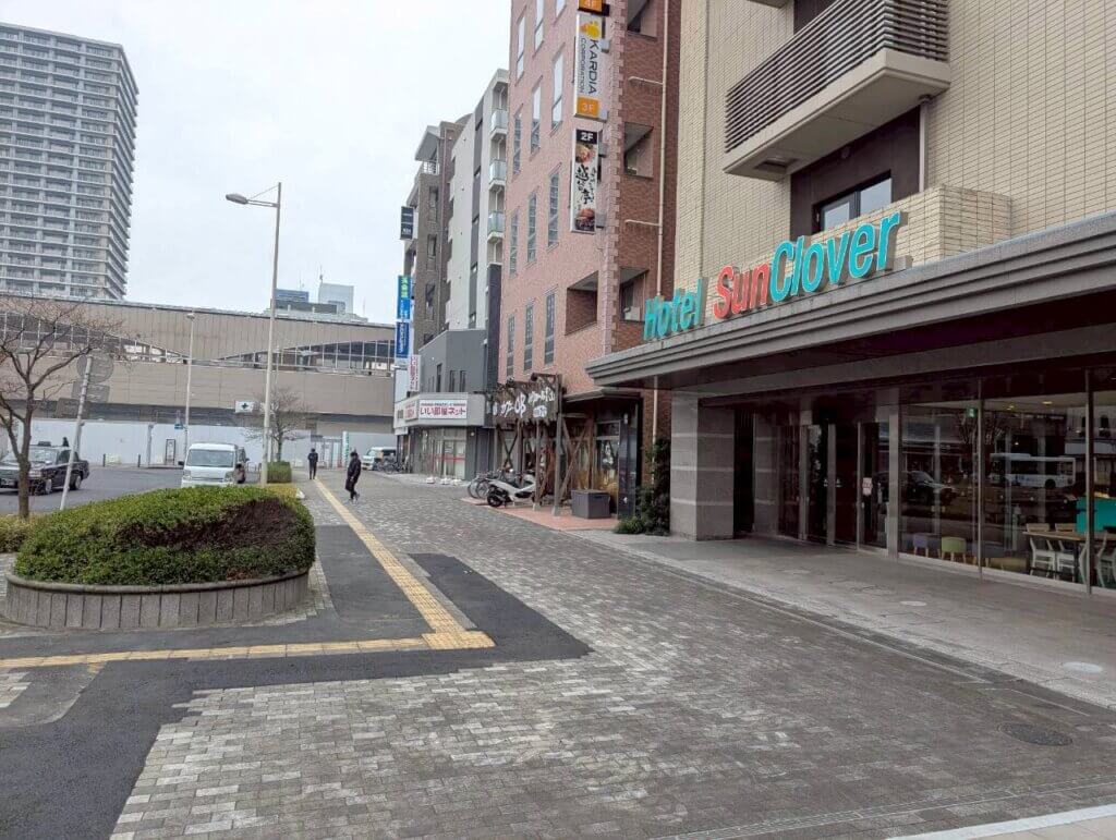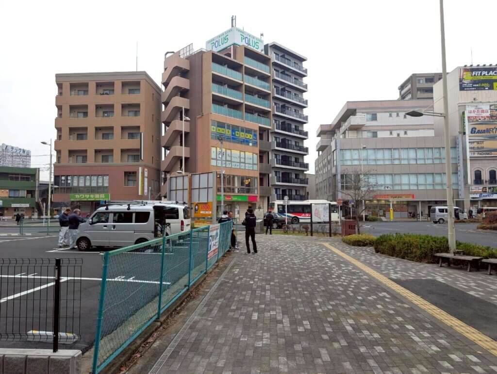 越谷駅西口のロータリー、ホテルサンクローバーの隣にあります。