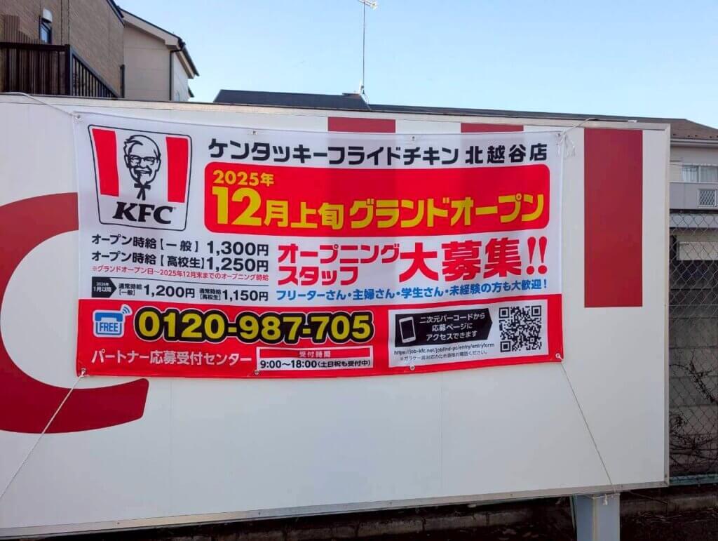 【クリスマス前にKFC】2025年12月11日、大房にケンタッキーフライドチキン北越谷店がオープンしました【がやてっく開店】