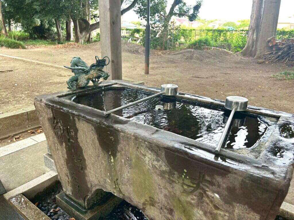 手を清める場所は水が出ています。この場所がしっかりしていると神社が生きているように感じられます。狛犬がこちらを力強く見ていました。