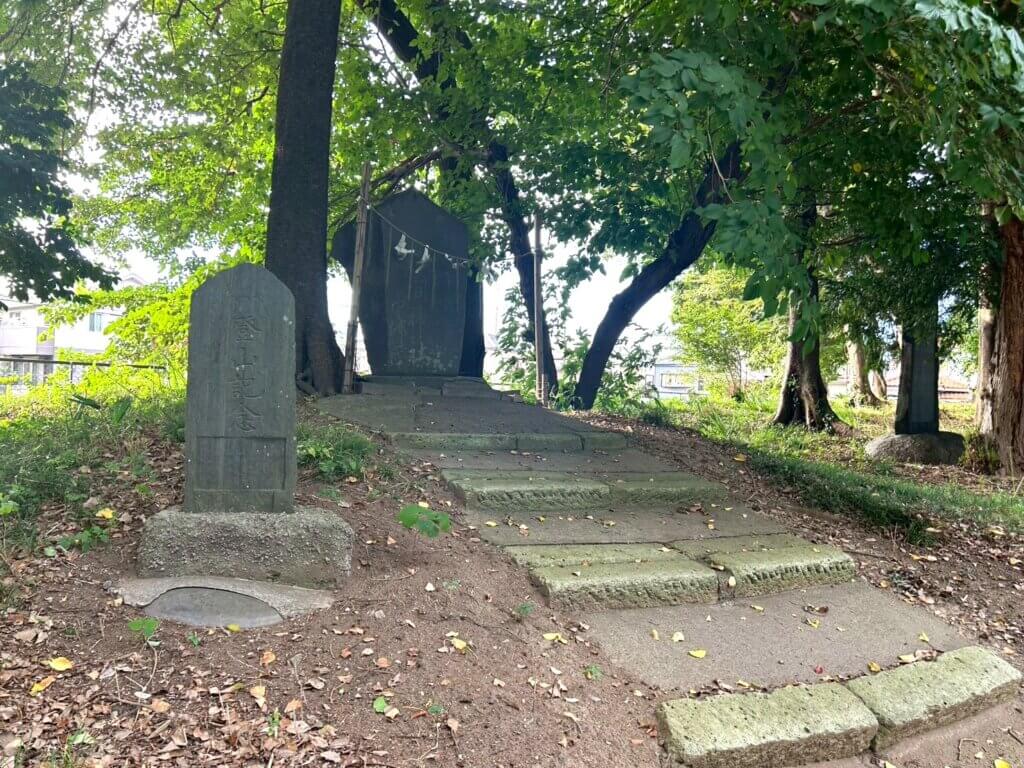 住宅地の中に大きな木が盛っと飛び出しているのが特徴です。あまり人が訪れる場所ではないので静かな空間だから居心地がとても良いです。神社内にはたくさんの石碑があるのでRPGの世界のようになっています。