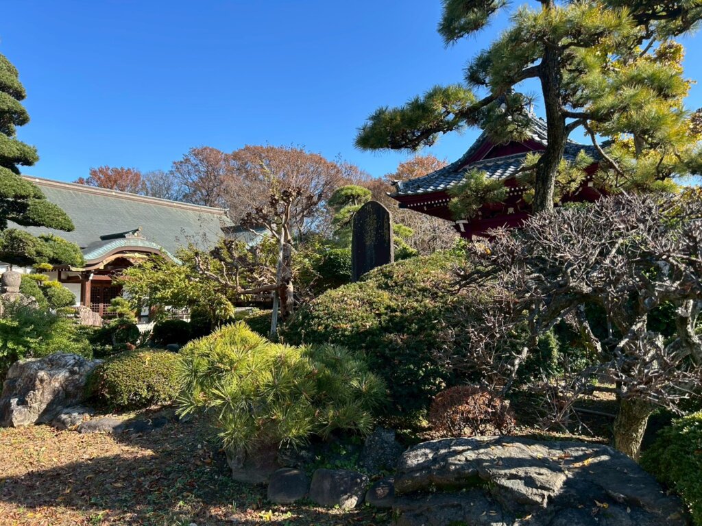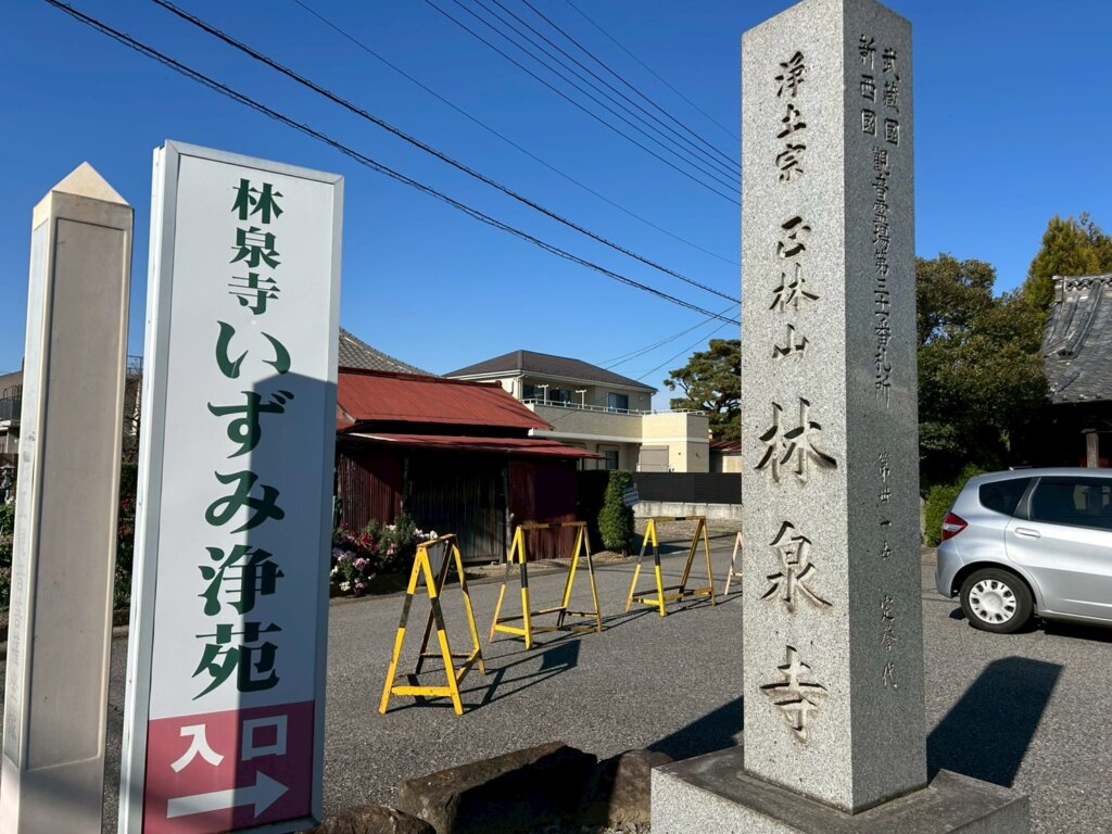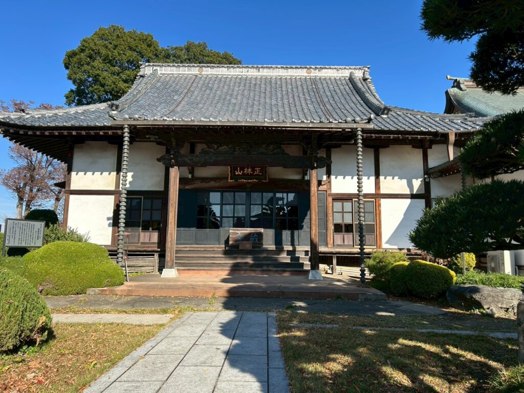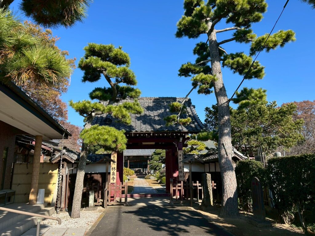 増林にある1297年に建てられたお寺になります。境内には、徳川家康が鷹狩りの際に馬を繋いだと伝えられる越谷市指定文化財「林泉寺駒止めのマキ」があります。国登録有形文化財になる予定があります。