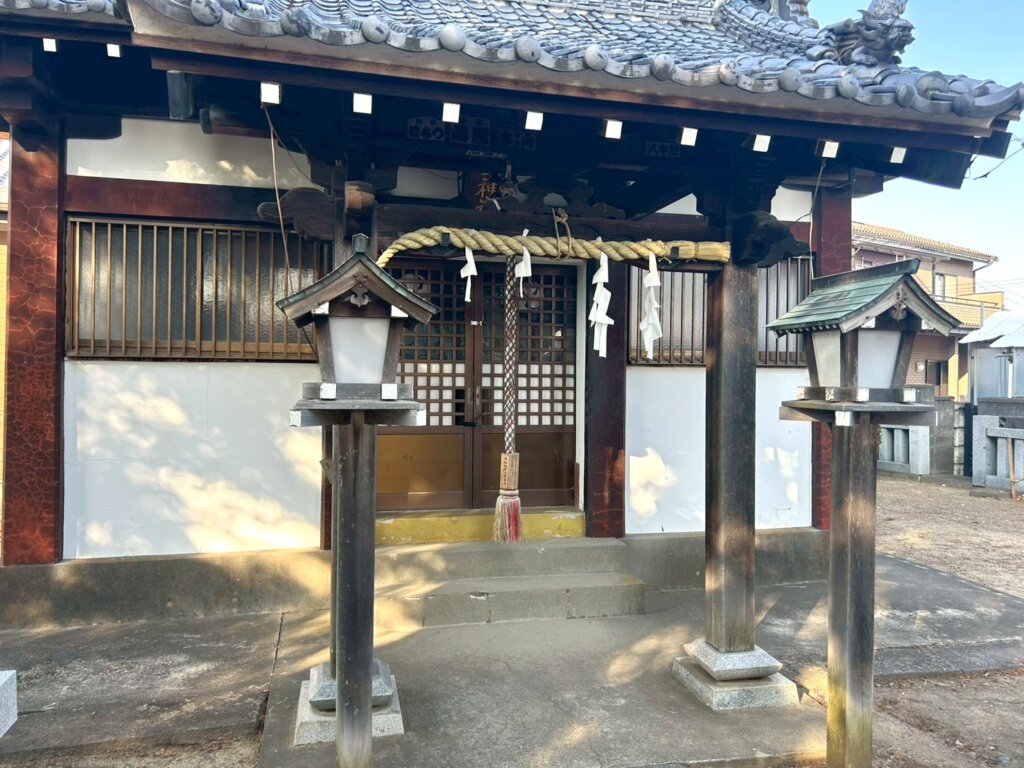 本殿もとても綺麗でした。賽銭箱が何故かありませんでしたが、大きな鈴が付いているタイプなのが特徴です。ダンジョンゲームやホラーゲームで大きな力を手に入れることができるエリアをよく見ると思いますが、越谷市はここにありました!