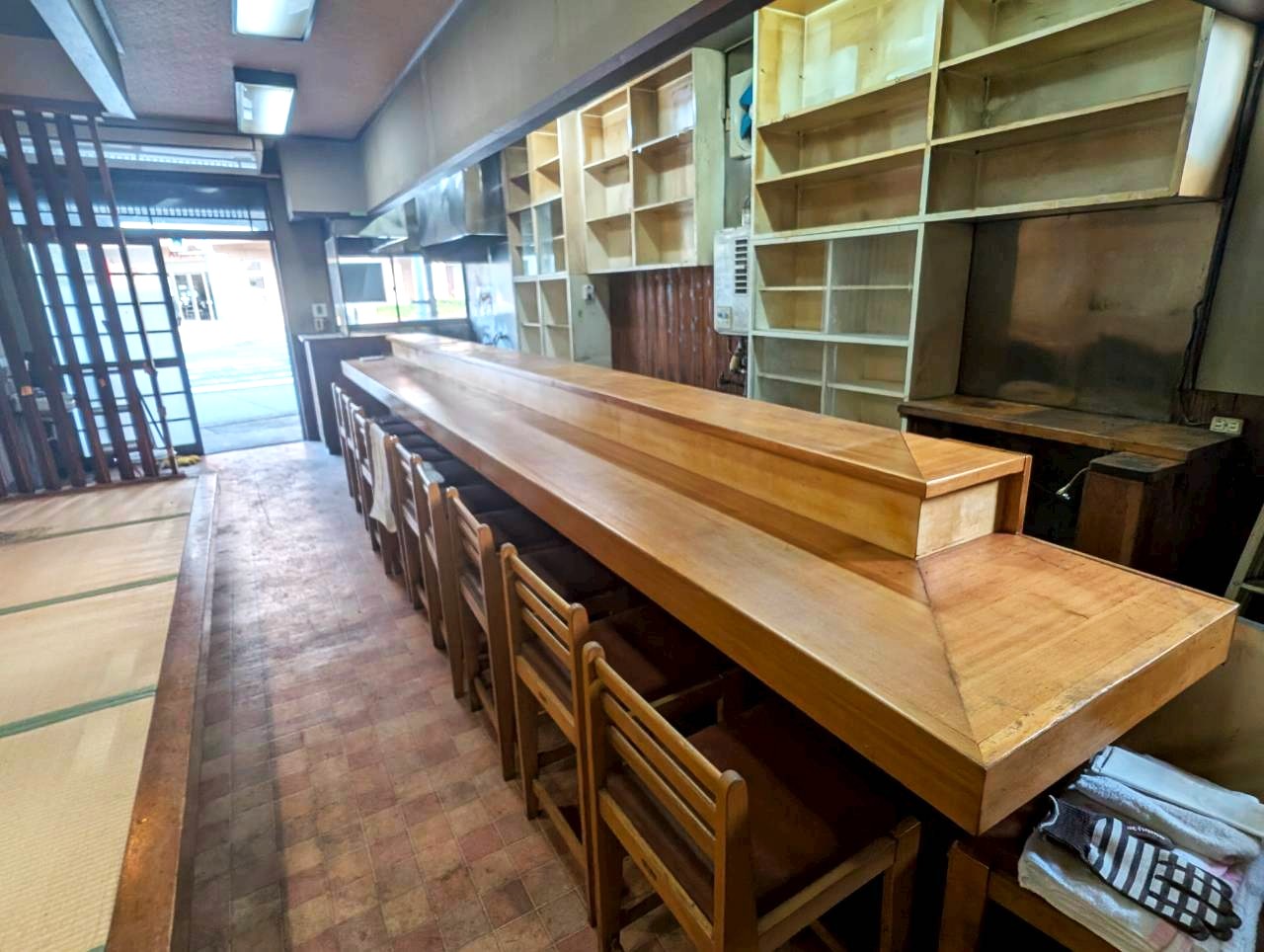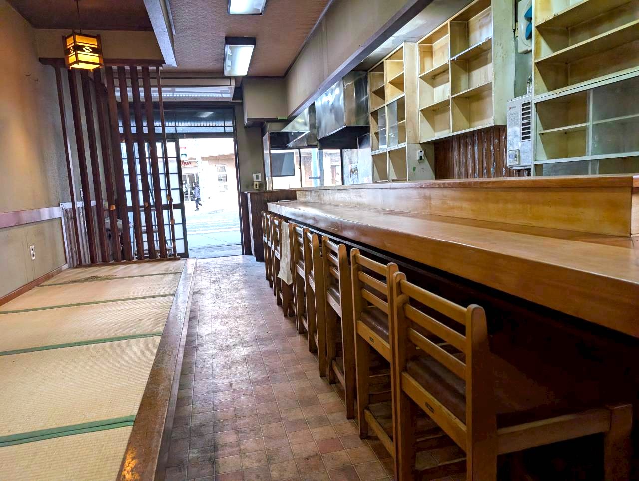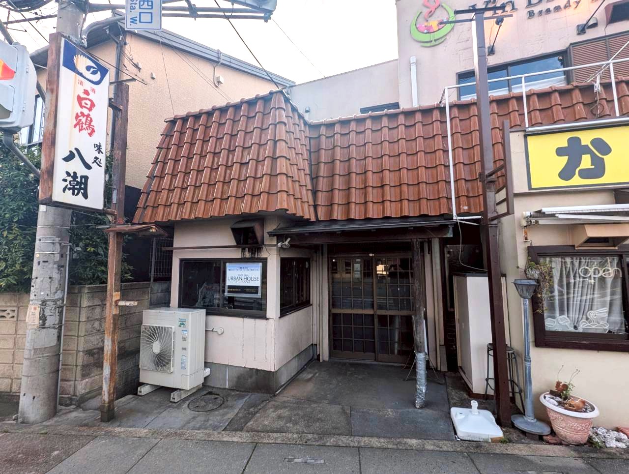 今回ご紹介させていただく建物は、越谷駅西口付近にある味処八潮さんの跡地です。瓦屋根に木の引戸。下町情緒が残る駅前エリアにピッタリな建物となっています。